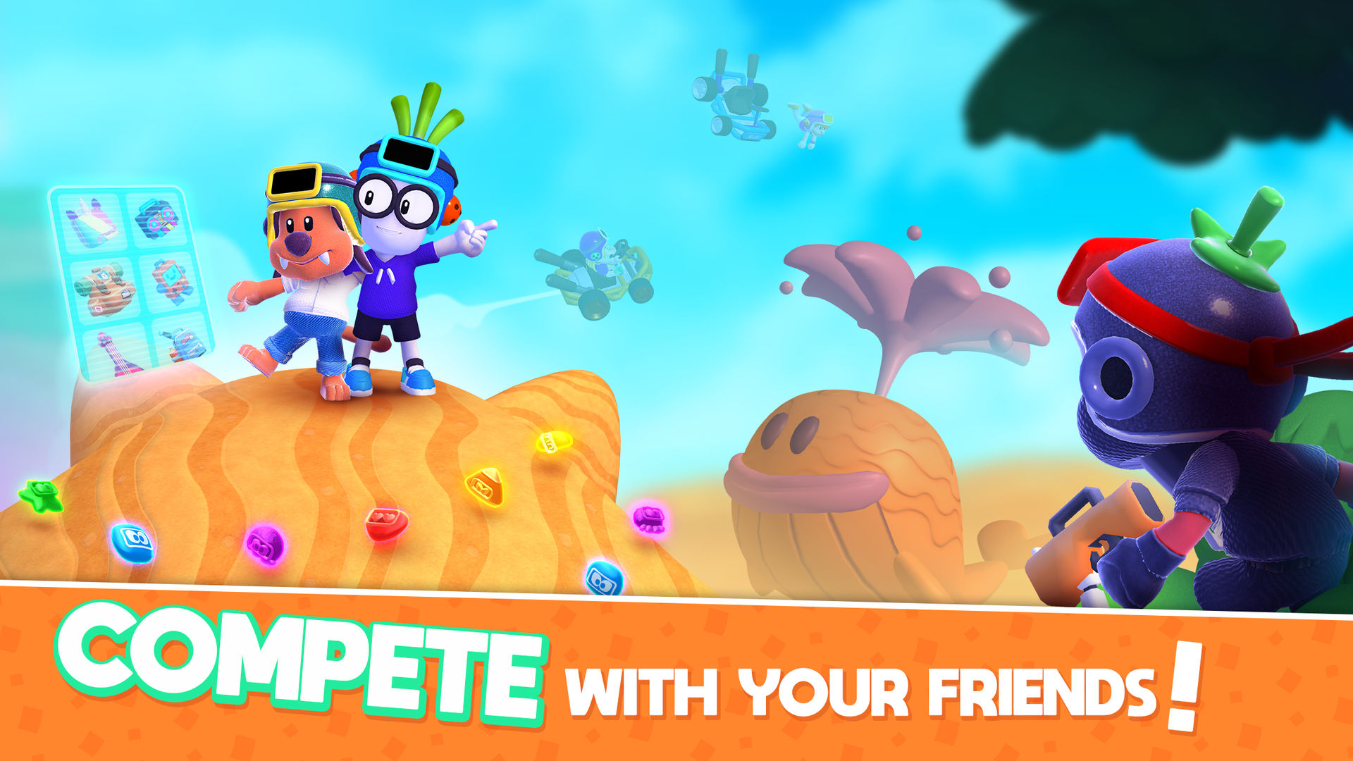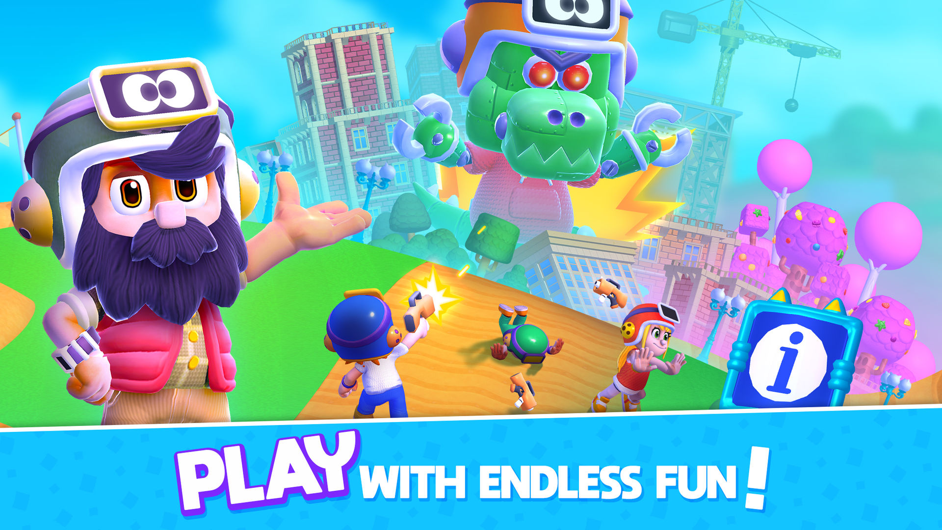 A 360-degree view and comic-style arts filled with imagination allows you to fully enjoy crushing your enemies! Turn your viewpoint and watch your enemies get frozen into ice cubes, smashed into a flat disc, squeezed into a cannonball or ejected to the sky!