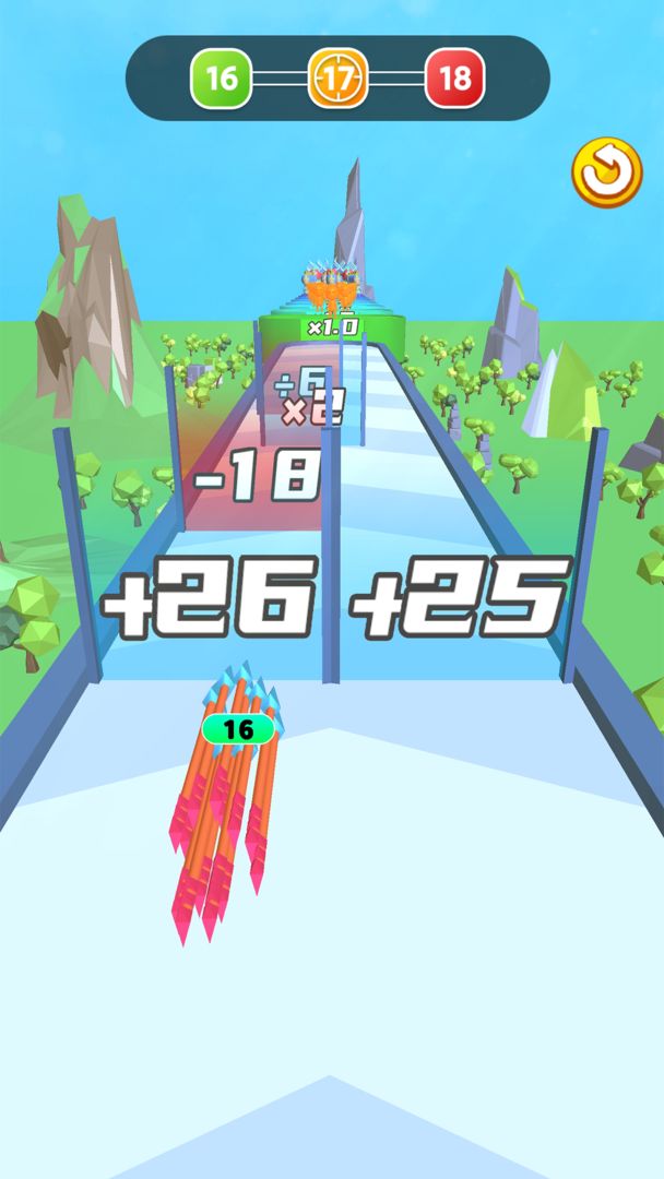 The crazy arrow has left the string, ready to fight at any time! Pay attention to the addition, subtraction, multiplication, and division of arrow doors, and choose the best arrow door! Destroying every enemy on the road will help you increase gold coins, buy cooler flying arrows, and help you achieve better results!