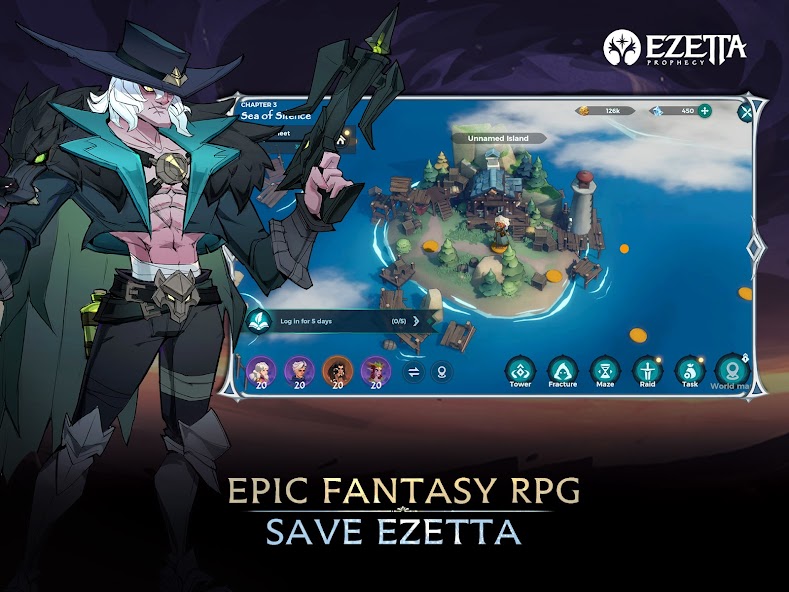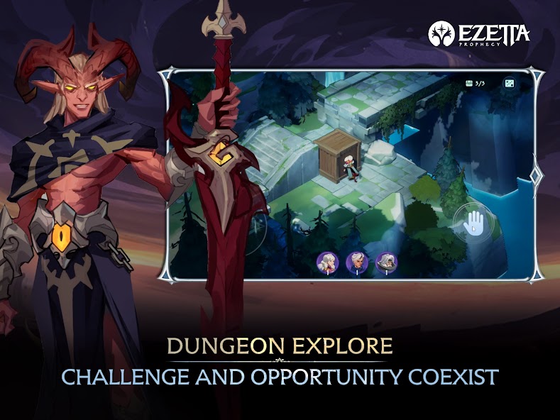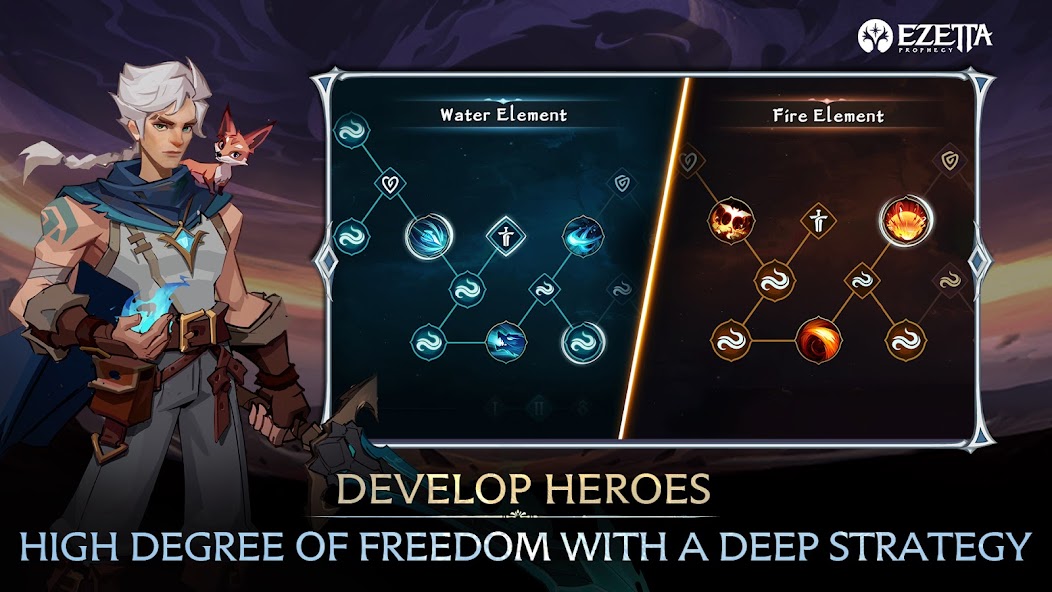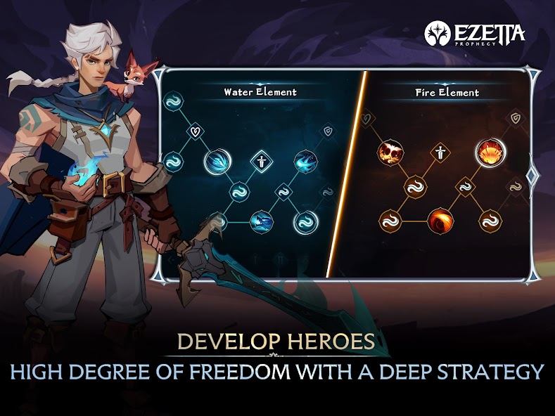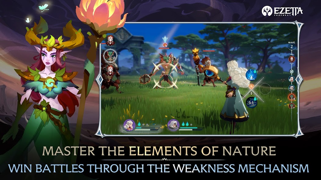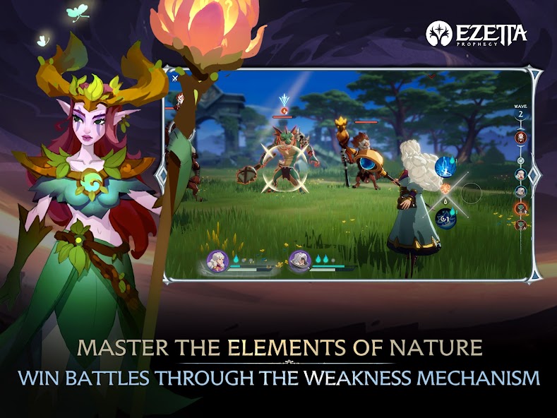 Dark forces are coming to the world of Ezetta through cracks in the sky. You, guided by the Prophecy of Ezetta must save the world of Ezetta through mastering the elements of nature, recruiting legendary heroes, and leading your team to explore the continent of Ezetta.