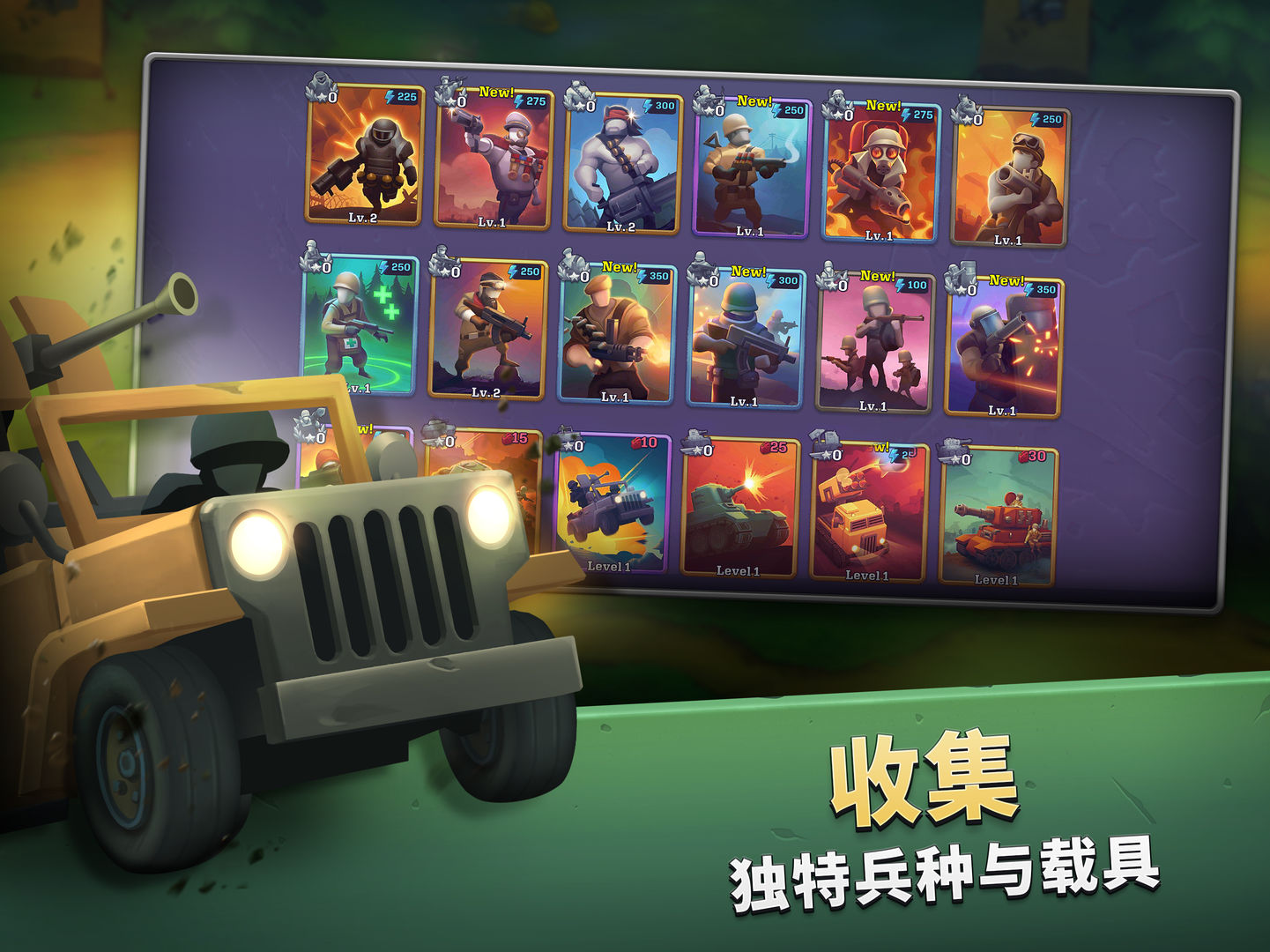 Expand your army by recruiting new troops. Capture loot in battle to constantly upgrade and customize your army. Use strategy to preserve your surviving forces, help your soldiers refine their combat skills, and prepare for future offensive and defensive battles.