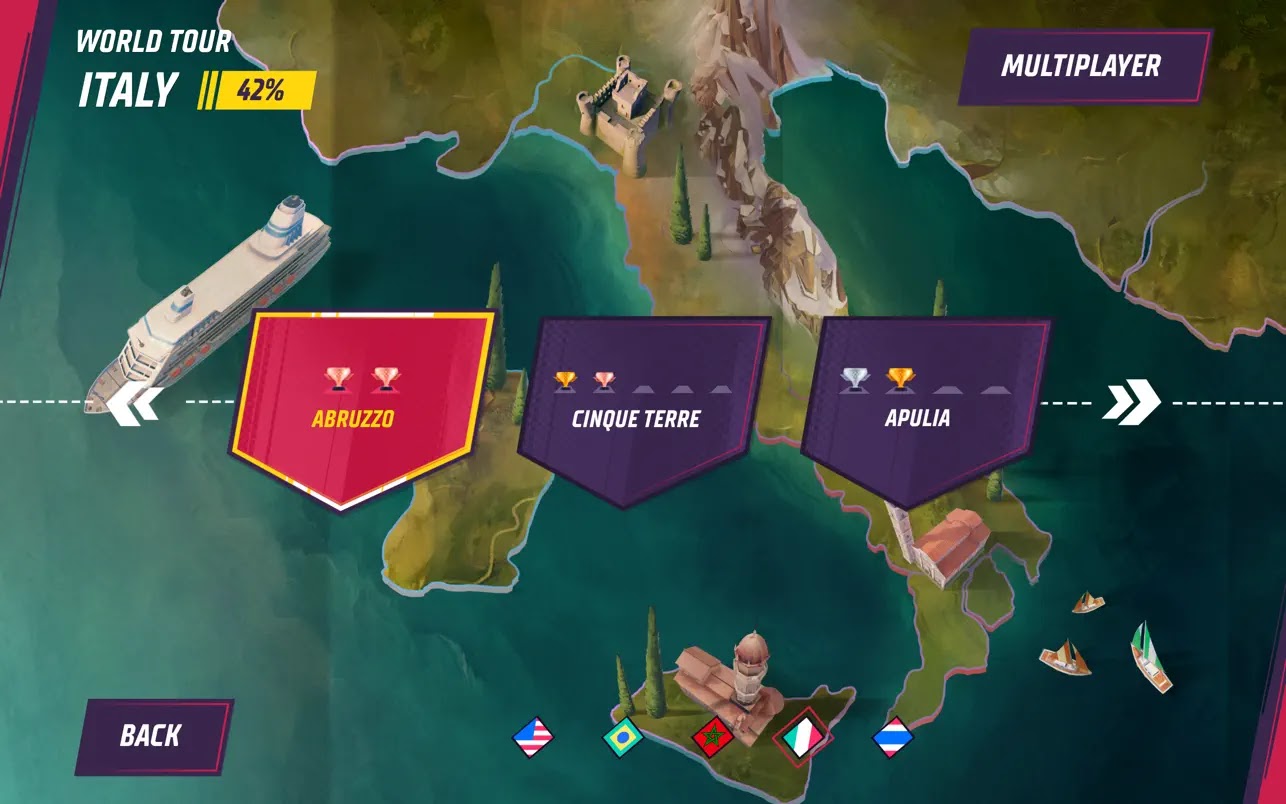 Red or blue? Stars or flames? When visiting the Garage Shop you can customize your car to make it as yours as possible. Collect new cosmetic items, and upgrade your stats throughout the World Tour. Race in different Game Modes and keep on the cycle of getting new visual rewards. Winning was never so worth it.