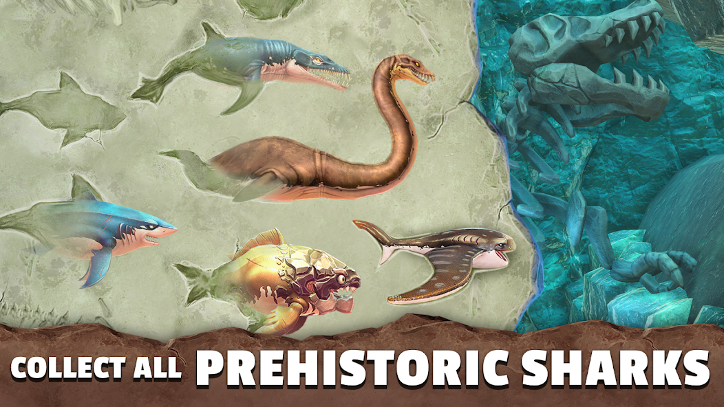 EXPLORE A PREHISTORIC WORLD as you swim, jump, and stomp your way through uncharted waters to become the top predator. Immerse yourself in a world unlike anything you’ve ever seen and experience the ultimate shark adventure.