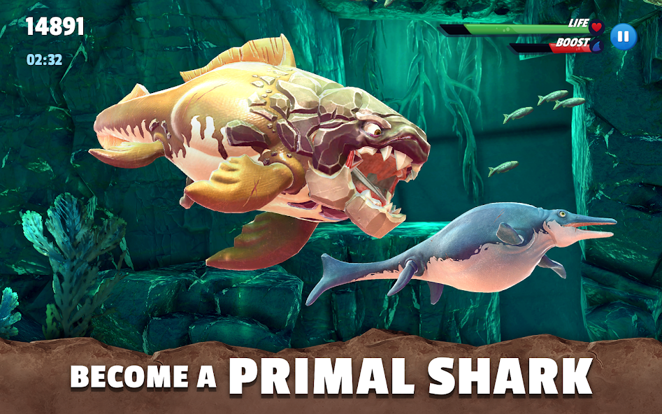 Get ready to embark on an epic adventure through time as you explore a prehistoric world in the latest instalment of the award-winning Hungry Shark series. In this game, you’ll become a ferocious shark and venture into primal territories, feasting on dinosaurs, aquatic creatures, and early humans while navigating the beautiful oceans of the past.