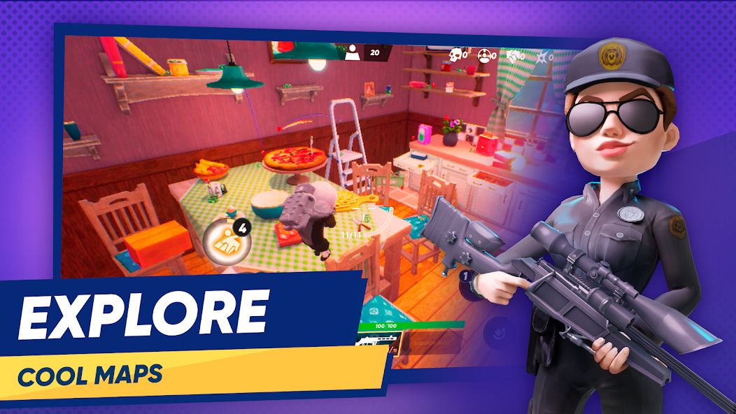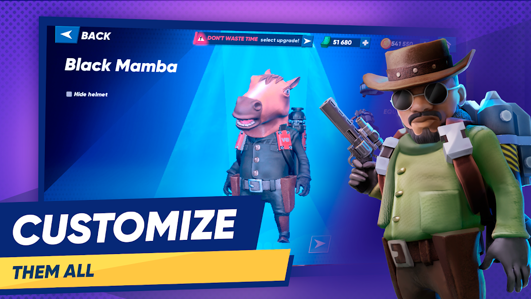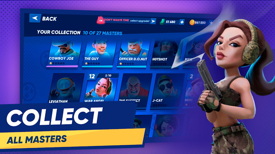Really big collection of masters for an exciting gun game experience. More than 25 heroes are ready for massive battles. All of them has its distinct strengths, weaknesses and special abilities. Collect ’em all, level up, customize and build up your dominant squad.