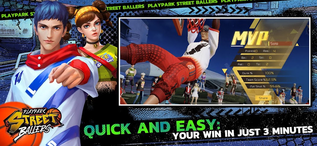 PlayPark StreetBallers is an action-packed mobile game that takes basketball with you wherever you go. a variety of game modes, unique character skills, outfit & court customization. Feel free to battle it out with other clubs with the best draft you can ever dream of