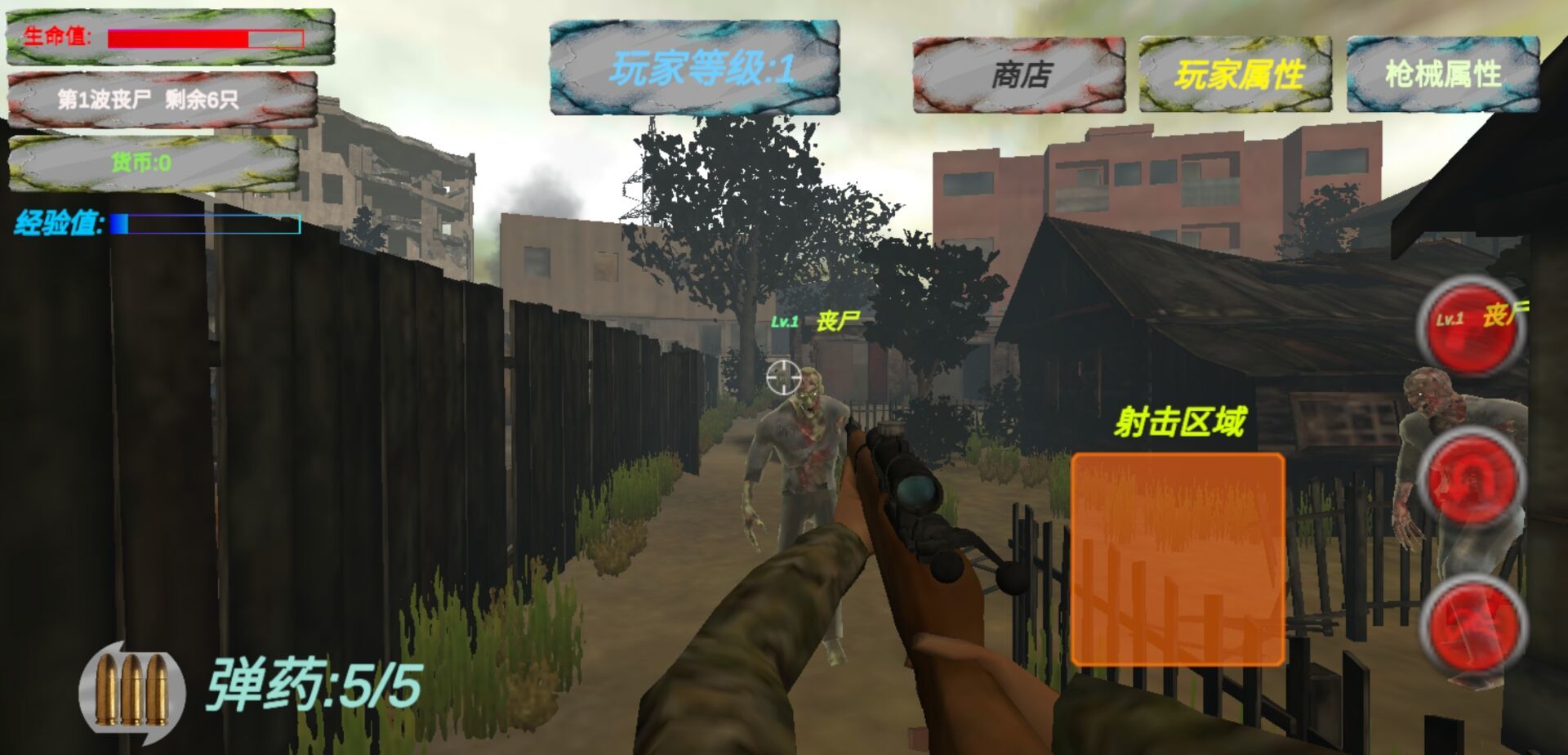 Prospective high school students spent a week developing a zombie shooting game. The zombies are refreshed in waves, divided into ordinary zombies, deformed zombies, and giant zombies. Killing zombies can obtain currency purchase upgrades, and the goal is to survive as long as possible. Only attack the zombie head. Zombies can cause damage to zombies! The zombie virus will mutate every time, the zombies will increase, and there will be giant zombies invading. Killing zombies can gain experience, and after upgrading, you can use skill points to upgrade abilities. The game contains 4 types of firearms. All have been purchased from the Unity Material Mall. This game has no in-app purchase ads, non-commercial use, game optimization is not very good, configuration requirements: Snapdragon 835 and above, Kirin 970 and above, blood is harmonious. There are certain bugs in the game gun system; Do not switch firearms when the weapons and ammunition are not full, otherwise the firearms will become unusable.