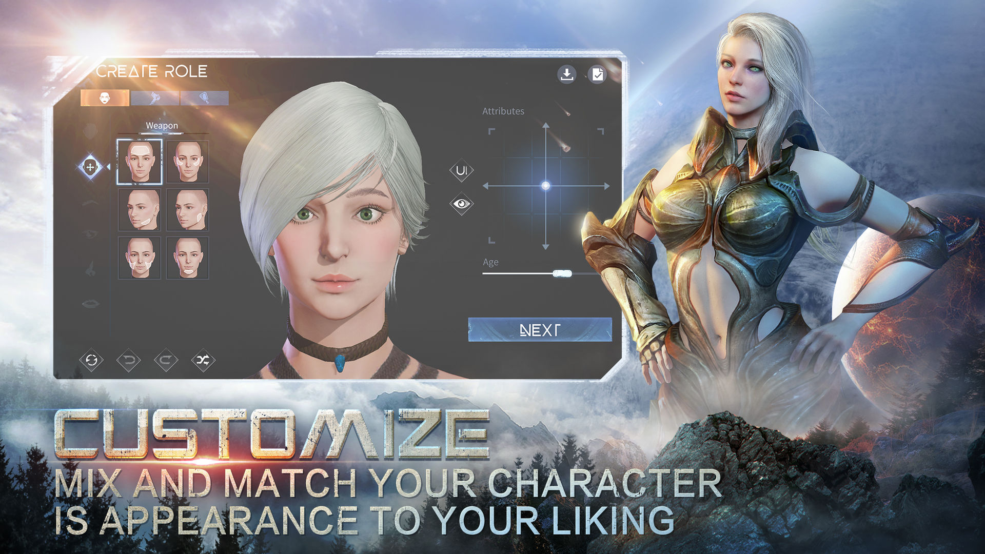 Yeager features an intuitive, action-oriented combat system that allows you to choose from five powerful weapon classes — Hunting Sword, Force Hammer, Fury Blades, Flux Blaster, or Eidolon Spear — to engage fearsome creatures up close, weaken them by breaking body parts with flashy combos and signature moves from your weapon class, and move in for the decisive kill.
